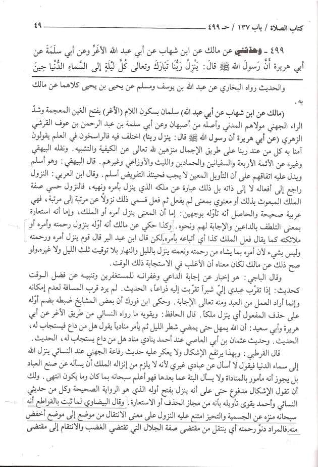 – Dans le même passage de son ouvrage, le Chaykh Az-Zourqâni a également rapporté la parole de l’Imâm Mâlik concernant le Hadîth du nouzoûl. [Voir l’article à ce sujet : ici]