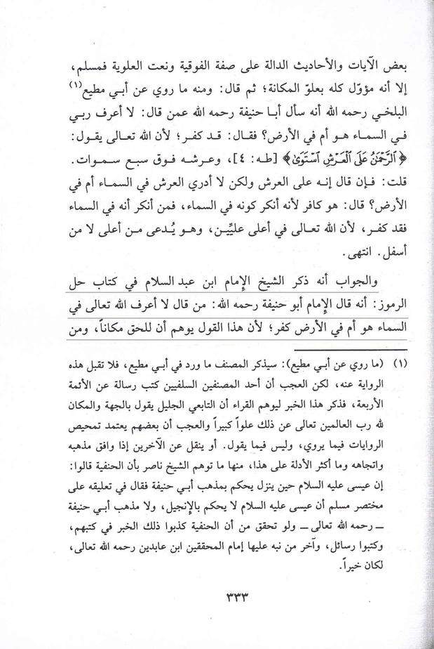 Dans son Charh (commentaire) du livre « Al-Fiqh Al-Akbar » de l’Imâm Aboû Hanîfah, (pages 333 et 334 de cette édition), le Chaykh Moullâ ‘Ali Al-Qâri a dit :