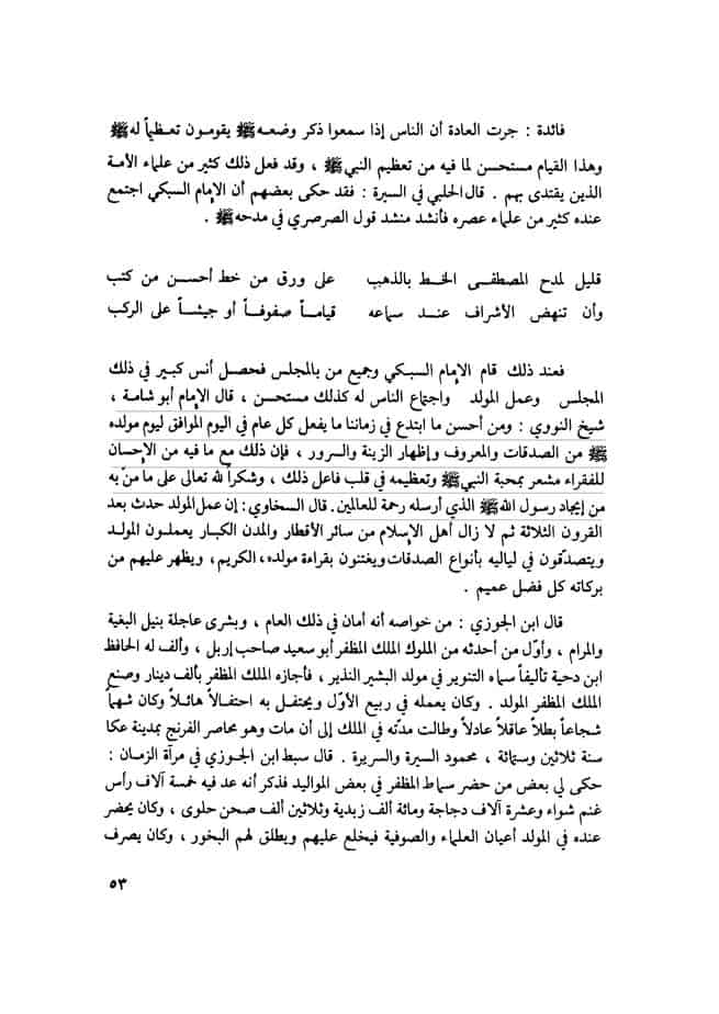 Dans son livre « As-Sîrah an-Nabawiyyah », le Moufti de La Mecque, le Chaykh Ahmad Ibn Zaynî Dahlân a consacré un chapitre à la commémoration du Mawlid dans lequel il a dit :