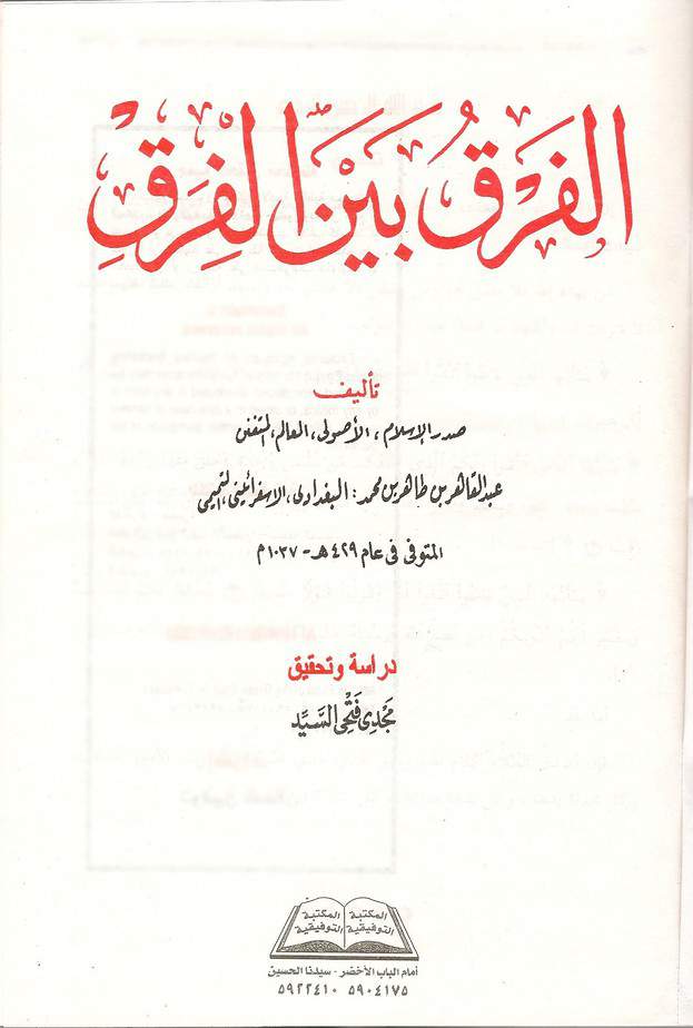 - L’Imâm Aboû Mansoûr Al-Baghdâdi [Al-Farqou bayna l-Firaq],
