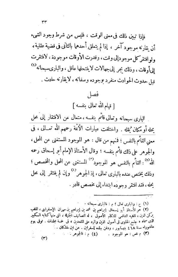 « البارئ سبحانه وتعالى قائمٌ بنفسه، متعال عن الافتقار إلى محلٍّ يحله أو مكانٍ يُقله »