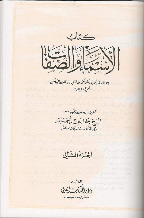 Dans son livre « Al-Asmâ-ou wa s-Sifât » tome 2 page 21 de cette édition (la page 20 est ajoutée pour que vous puissiez voir le contexte) l’Imâm Al-Bayhaqi rapporte que l’Imâm Al-Khattâbi a dit :