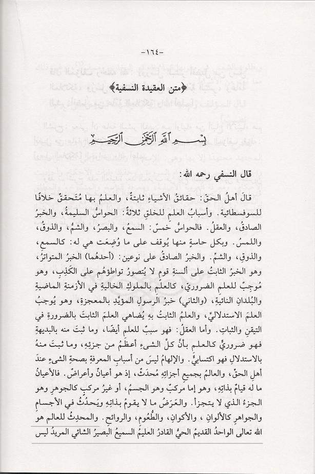 – Le Mouhaddith (spécialiste de la science du hadîth) Aboû Hafs Najmou d-Dîn ‘Oumar Ibnou Mouhammad An-Naçafi, le Hanafite, est né en 461 et il est décédé en 537 de l’Hégire (رحمه الله) c’est-à-dire il y a environ 900 ans. Il est l’auteur du traité de croyance connu sous le nom de « ‘Aqîdatou n-Naçafiyyah», qui est l’un des traités de croyance les plus célèbres, les plus répandus, et les plus étudiés dans le monde musulman.
