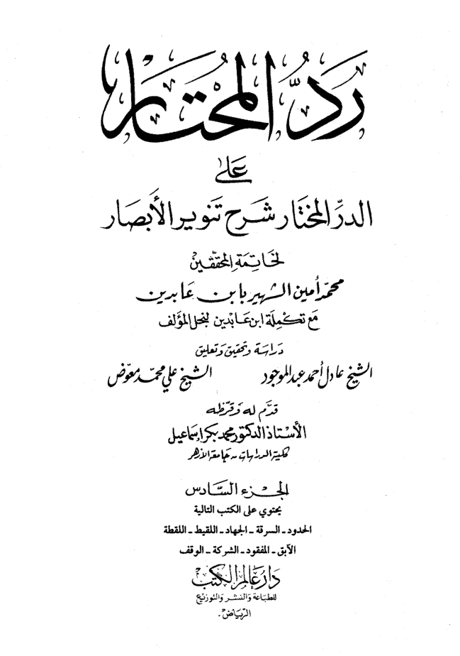 – L’Imâm, Le Faqîh – spécialiste de la jurisprudence -, Mouhammad Amîn Ibnou ‘Oumar connu sous le nom de Ibnou ‘Âbidîn Al-Hanafi Ad-Dimachqi, est né en 1198 et il décédé en 1252 de l’Hégire (رحمه الله) c’est-à-dire il y a environ 180 ans. C’est un savant très connu, qui était considéré comme l’Imâm Hanafite de son temps. Il vécu et enseigna principalement à Damas.